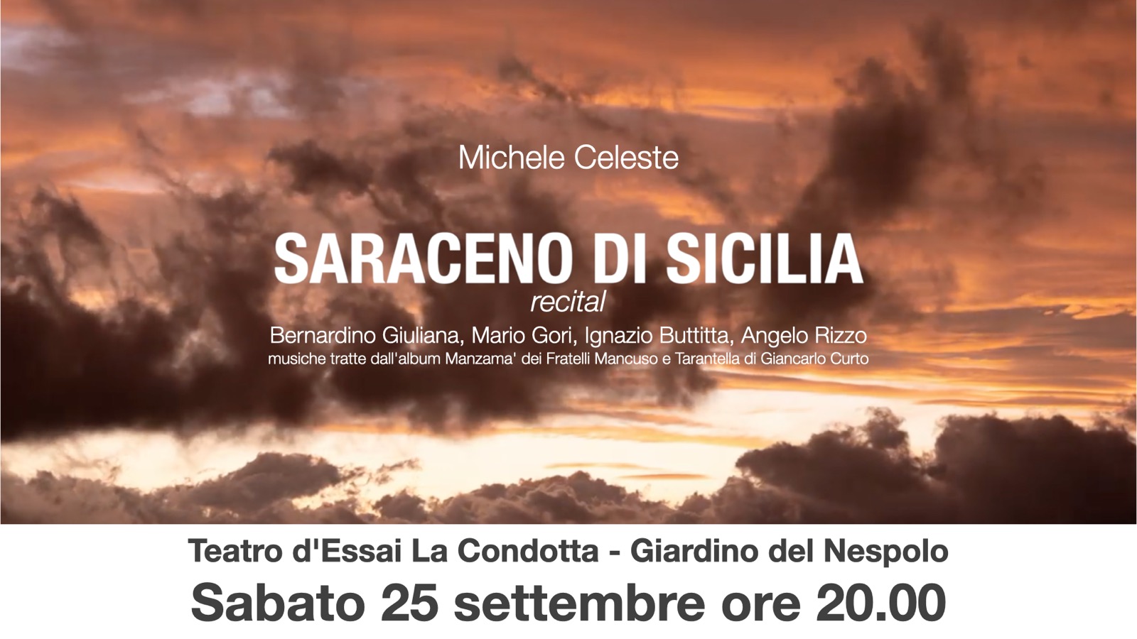 Saraceno di Sicilia è un viaggio emozionale, un invito a scendere nel mondo dei piccoli, quello dei carusi delle miniere cantati dal poeta Angelo Rizzo ma anche dei giovani africani, che giacciono insepolti nel deserto o nel Mediterraneo, dei versi di Michele Celeste. Scendere in quel mondo per poi risalire con uno di loro è un’esigenza spirituale.